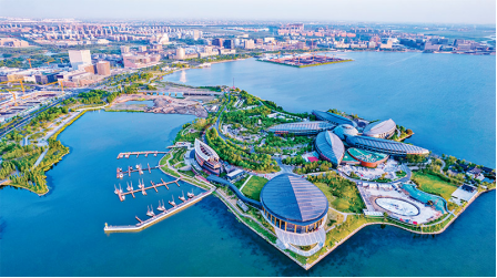 構(gòu)建新發(fā)展格局是開(kāi)放的國(guó)內(nèi)國(guó)際雙循環(huán),我國(guó)堅(jiān)定不移擴(kuò)大對(duì)外開(kāi)放,對(duì)外開(kāi)放廣度和深度得到全面拓展。圖為上海自貿(mào)區(qū)臨港新片區(qū)滴水湖畔,多個(gè)重點(diǎn)項(xiàng)目如雨后春筍般拔地而起,面貌日新月異。中新社發(fā)鐘鑫旺/攝