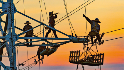 提高人民生活品質(zhì)是暢通國(guó)內(nèi)大循環(huán)的出發(fā)點(diǎn)和落腳點(diǎn),也是國(guó)內(nèi)國(guó)際雙循環(huán)相互促進(jìn)的重要聯(lián)結(jié)點(diǎn)。圖為2022年8月18日,在江蘇省鎮(zhèn)江市220千伏天王至江寧牽引站線路工程現(xiàn)場(chǎng),江蘇省送變電有限公司施工人員在高溫酷暑下加緊建設(shè),全力保障企業(yè)生產(chǎn)、居民生活用電需求。中新社發(fā)史俊/攝