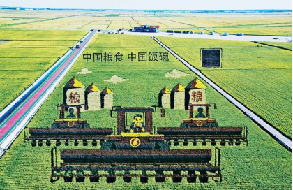 解決吃飯問題,根本出路在科技。圖為2022年9月2日拍攝的黑龍江省富錦市萬畝水稻科技示范園里的稻田畫,勾勒出金秋豐收景象。該科技示范園區(qū)應(yīng)用物聯(lián)網(wǎng)、云計(jì)算等現(xiàn)代信息技術(shù),對(duì)水稻種子催芽、育秧大棚管控、農(nóng)田節(jié)水灌溉、氣象綜合信息、水稻田間長(zhǎng)勢(shì)、病蟲草害監(jiān)測(cè)等進(jìn)行全程智能化分析和指導(dǎo),助力提高水稻產(chǎn)量、種植效率和品質(zhì)。新華社記者王建威/攝