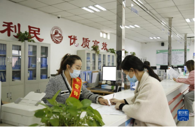 河北省邢臺市襄都區(qū)宴家屯鎮(zhèn)綜合服務(wù)中心工作人員協(xié)助辦事群眾填寫相關(guān)表格(2022年3月30日攝)。新華社發(fā)(張馳攝)