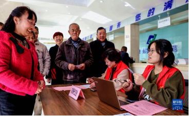 浙江省長興縣呂山鄉(xiāng)金村村級代辦員為村民登記所需辦理事務(wù),由代辦員統(tǒng)一去縣里為村民代辦(2019年11月20日攝)。呂山鄉(xiāng)金村在村便民服務(wù)中心專門設(shè)立代辦窗口,為村民提供代辦、代繳費服務(wù)。新華社記者徐昱攝