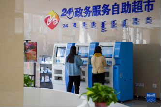 在內(nèi)蒙古自治區(qū)呼和浩特市玉泉區(qū)政務(wù)服務(wù)中心的“24小時政務(wù)服務(wù)自助超市”,市民在自助辦理發(fā)票業(yè)務(wù)(2022年4月2日攝)。新華社記者李志鵬攝