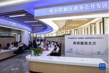 在黑龍江省哈爾濱新區(qū)江北一體發(fā)展區(qū)(自貿(mào)試驗區(qū)哈爾濱片區(qū))政務(wù)服務(wù)大廳,市民在辦理業(yè)務(wù)(2022年7月12日攝)。新華社記者張濤攝