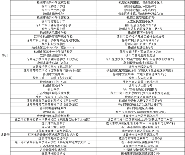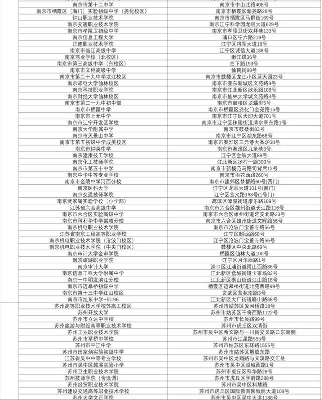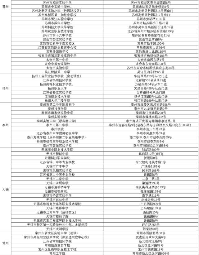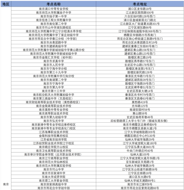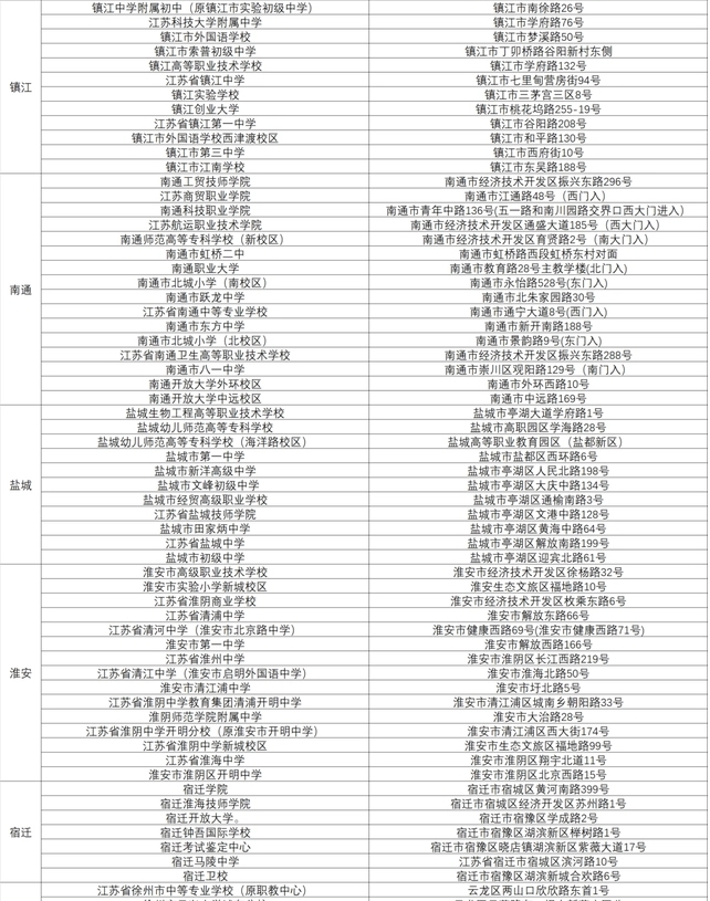 江蘇公務員考試考場分布表