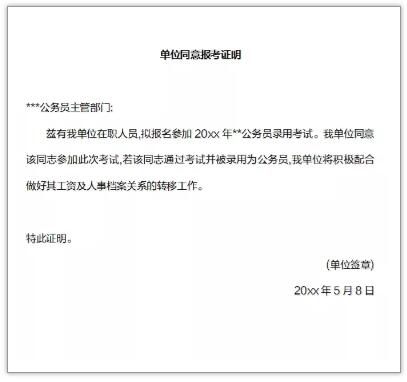 5、單位同意報(bào)考證明