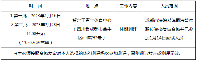 關于2022年成都市法院系統(tǒng)公開考試錄用公務員面試及司法警察職位體能測評公告