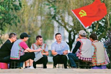 云南省曲靖市陸良縣紀(jì)委監(jiān)委以“清風(fēng)講壇”為載體,組織宣講員通過面對面、互動化、通俗化的方式開展宣講活動,推動黨的二十大精神在基層落地生根。圖為2022年10月26日,陸良縣龍海鄉(xiāng)小新村的彝族群眾參加宣講活動現(xiàn)場。人民視覺王勇/攝