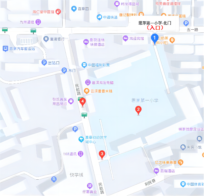 3.思茅第一小學(xué),地址:普洱市思茅區(qū)五一路8號(hào)