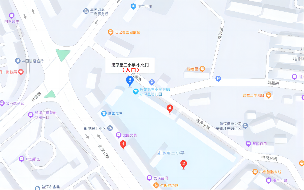 4.思茅第三小學(xué),地址:普洱市思茅區(qū)鳳凰路7號(hào)
