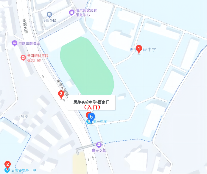 (四)請(qǐng)報(bào)考人員在考試前一天熟悉考點(diǎn)地址和交通路線。普洱市思茅區(qū)各考點(diǎn)地址及位置示意圖如下: