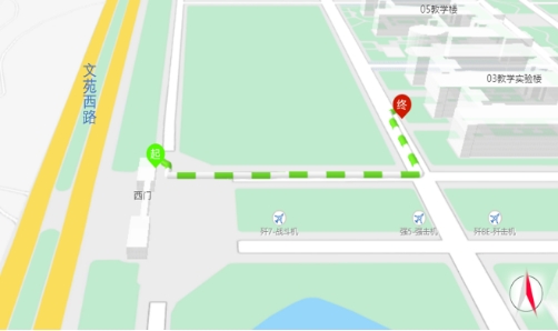 考試當(dāng)天考生從學(xué)校西大門(文苑西路)進(jìn)入校園,進(jìn)入校園后請按照指定路線(如下圖)行進(jìn)至考場所在位置(03教學(xué)實(shí)驗(yàn)樓),沿途設(shè)有指路牌。為便于考生查詢考場信息,指路牌旁和考場所在教學(xué)樓前均設(shè)有考場分布圖(附件)。