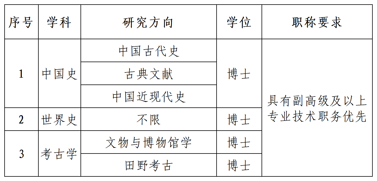 按照學(xué)院學(xué)科建設(shè)發(fā)展需求,學(xué)院在中國史、世界史和考古學(xué)等學(xué)科下設(shè)有高層次人才崗位,常年面向海內(nèi)外招聘各類高層次人才,待遇從優(yōu),一事一議。