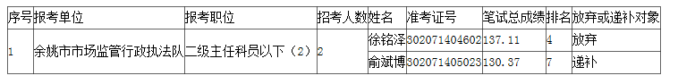2023年浙江公務員考試寧波余姚市放棄資格復審(體能測評)及遞補公告(二)