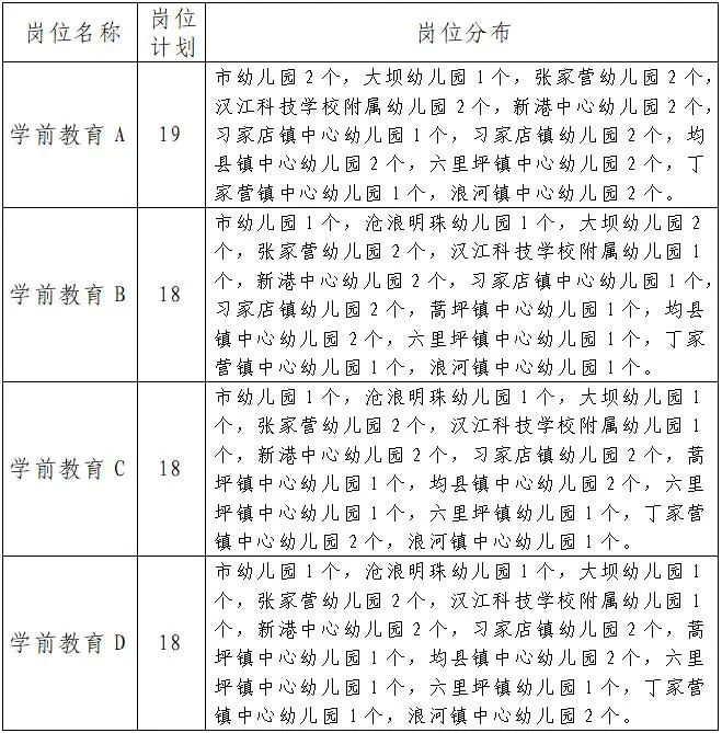 2023年丹江口市公開(kāi)招聘義務(wù)教育及學(xué)前教育教師共142人,其中義務(wù)教育學(xué)校教師69人(城區(qū)初中16人、城區(qū)小學(xué)53人),學(xué)前教育教師73人。具體招聘崗位詳見(jiàn)“湖北省教育考試院”官網(wǎng)公布的招聘崗位表,崗位表具體情況附后。