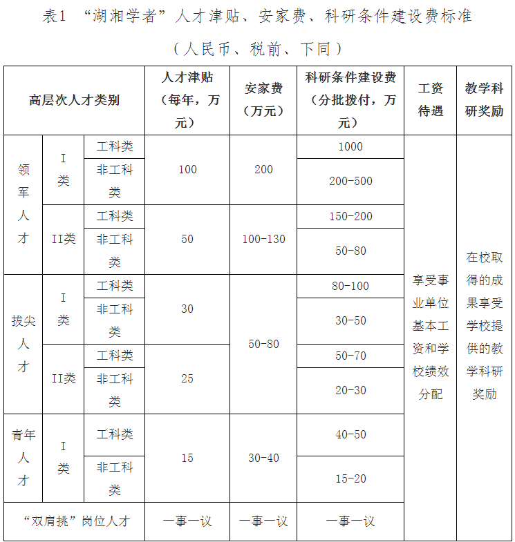 1.高層次人才按照《長沙理工大學(xué)“湖湘學(xué)者”人才計(jì)劃實(shí)施辦法》(長理工大黨〔2022〕45 號)確定薪酬待遇(見表1),提供相應(yīng)安家費(fèi)和科研啟動費(fèi),并提供免費(fèi)過渡性住房保障。