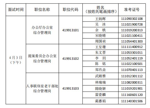 根據(jù)公務(wù)員法和公務(wù)員錄用有關(guān)規(guī)定,現(xiàn)就北京市政協(xié)2023年度考試錄用公務(wù)員面試有關(guān)事宜通知如下: