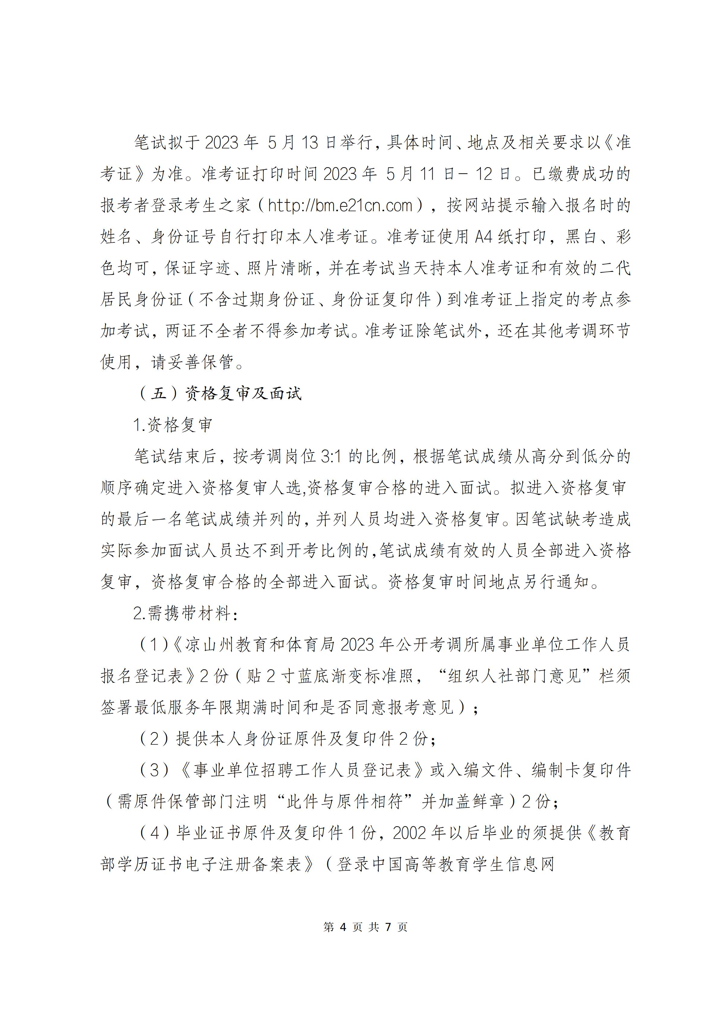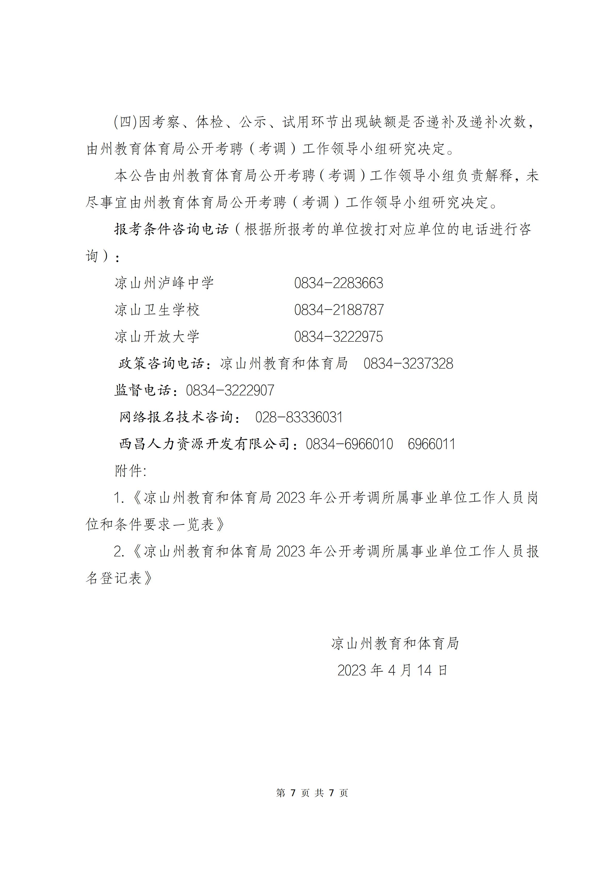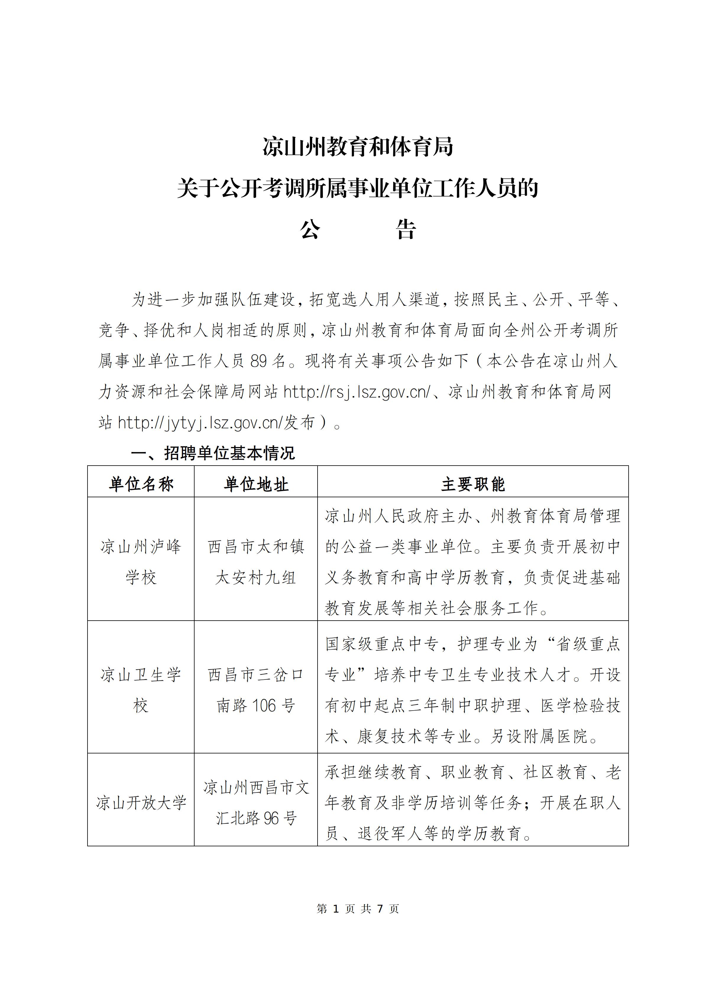 涼山州教育和體育局關(guān)于公開(kāi)考調(diào)所屬事業(yè)單位工作人員的公告