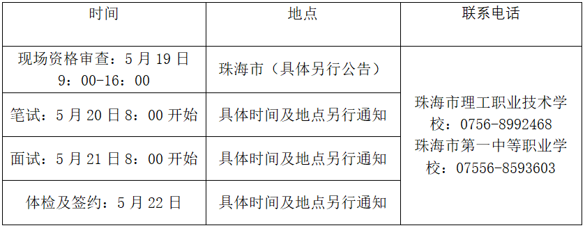 考試成績、參加體檢及考察人員名單,于面試工作結(jié)束當(dāng)日,在珠海市理工職業(yè)技術(shù)學(xué)校和珠海市第一中等職業(yè)學(xué)校網(wǎng)站及微信公眾號公布。