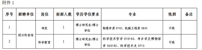 根據(jù)《事業(yè)單位人事管理條例》《紹興市事業(yè)單位公開招聘工作實施細則(試行)》的相關(guān)規(guī)定,經(jīng)研究,紹興科技館決定面向社會公開招聘優(yōu)秀博士研究生2名?,F(xiàn)將有關(guān)事項公告如下: