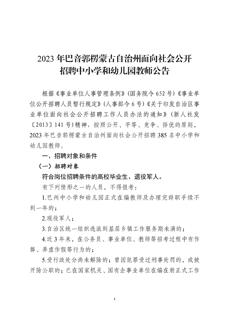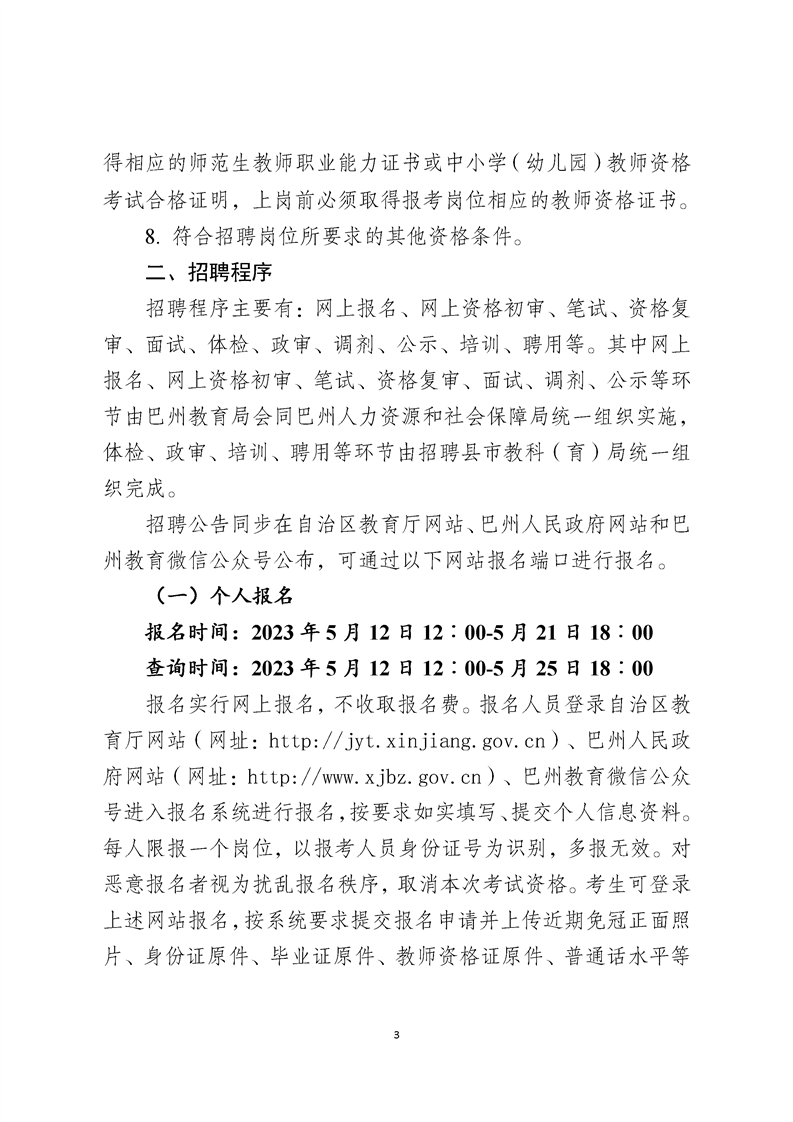 2023年新疆巴州巴音郭楞蒙古自治州招聘中小學和幼兒園教師公告