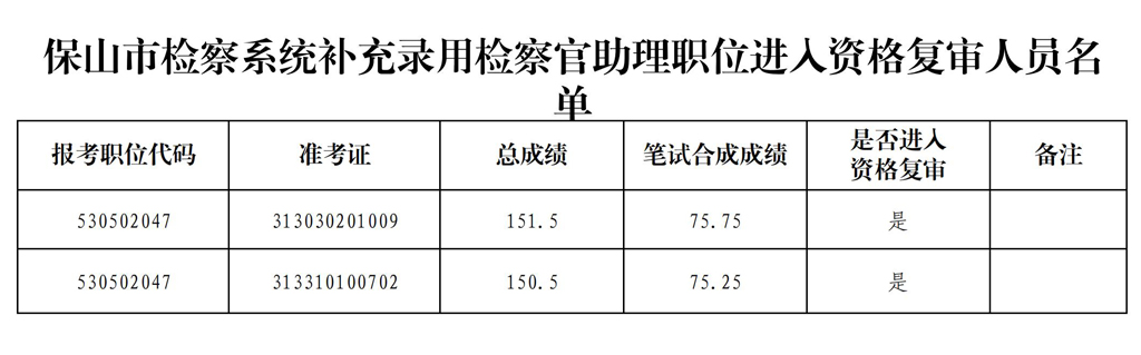 保山市檢察系統2023年度補充錄用檢察官助理職位公務員資格復審公告