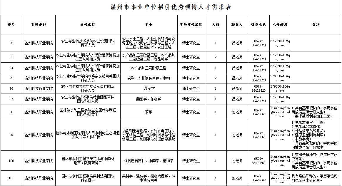 溫州科技職業(yè)學(xué)院2023年關(guān)于溫州市事業(yè)單位和領(lǐng)軍企業(yè)招引優(yōu)秀碩博人才的公告