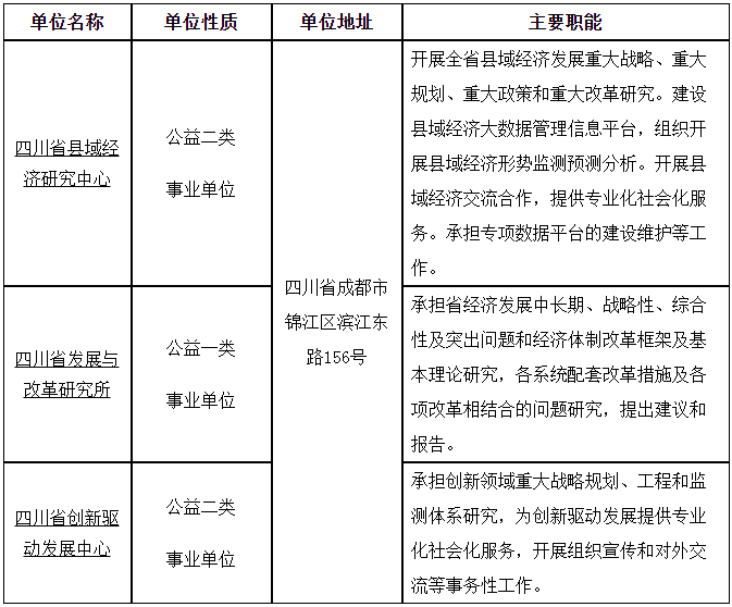 附件:四川省發(fā)展和改革委員會直屬事業(yè)單位2023年公開選調(diào)工作人員崗位一覽表
