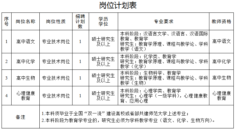 3.具有研究生以上學(xué)歷、碩士以上學(xué)位且本科畢業(yè)于全國“雙一流”建設(shè)高校或省部共建師范大學(xué),符合招聘崗位專業(yè)要求;