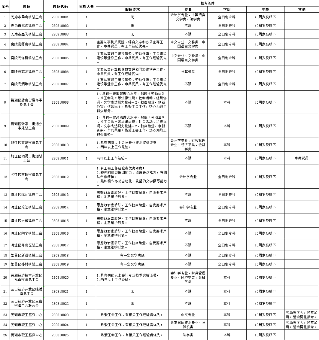 蕪湖市總工會面向社會招聘社會化工會工作者公告