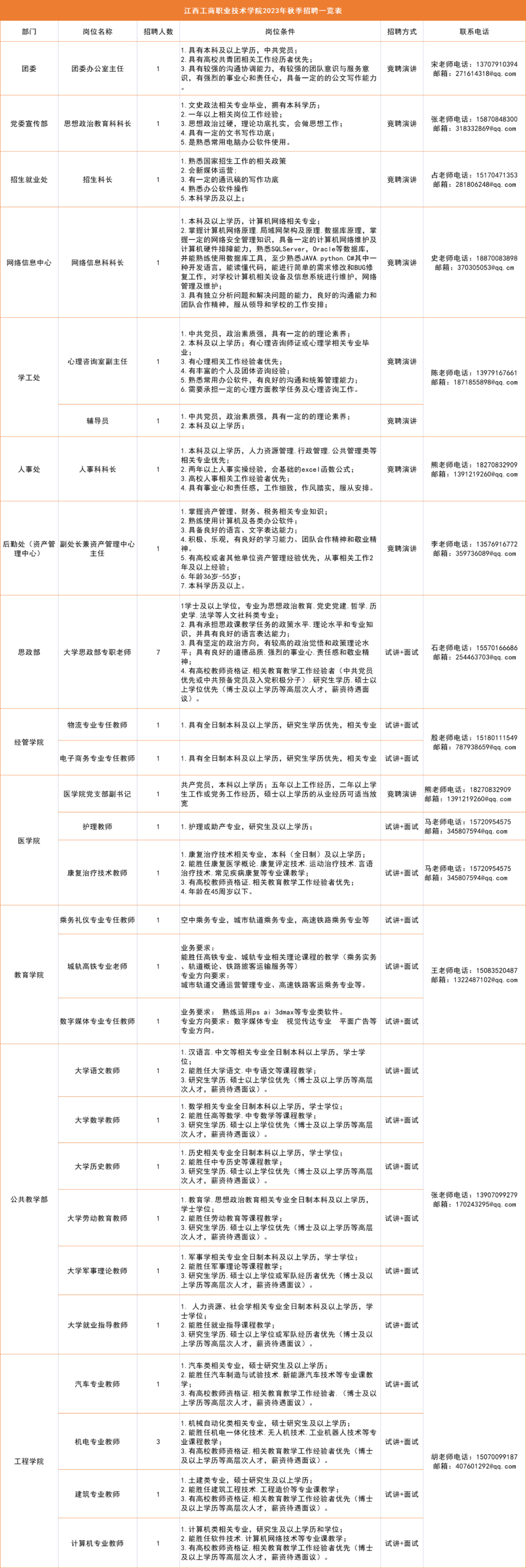 高層次人才(專業(yè)(群)建設(shè)帶頭人):60歲以下具有博士學(xué)位且具有高級(jí)專業(yè)技術(shù)職務(wù)的人才、行業(yè)特殊人才;(薪資面議,專業(yè)不限)