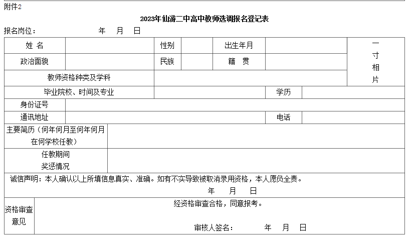 2.2023年仙游二中教輔人員選調(diào)報名登記表