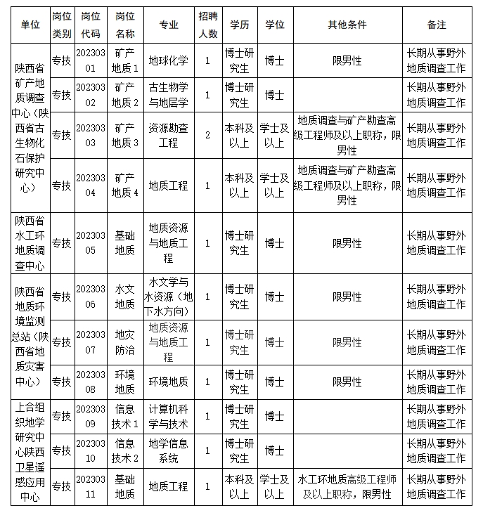 陜西省地質(zhì)調(diào)查院2023年公開招聘博士研究生和高級(jí)專業(yè)技術(shù)人員公告