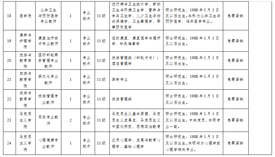 本次引進急需緊缺人才28名,涉及1個事業(yè)單位,24個崗位。崗位引進條件詳見附件1《湖北三峽職業(yè)技術學院2024年急需緊缺人才引進崗位表》。