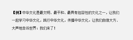 (3)呼吁號召式:呼吁號召的情感色彩更重,有點類似于我們寫宣傳稿最后的呼吁號召。