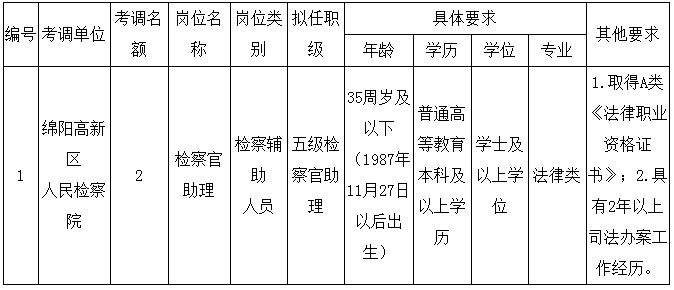 附件1.綿陽高新區(qū)人民檢察院2023年公開考調(diào)工作人員職位表