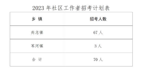 此次全市面向社會(huì)公開招考社區(qū)工作者70人。具體招聘數(shù)量詳見附件《2023年尚志市面向社會(huì)招錄社區(qū)工作者計(jì)劃表》。