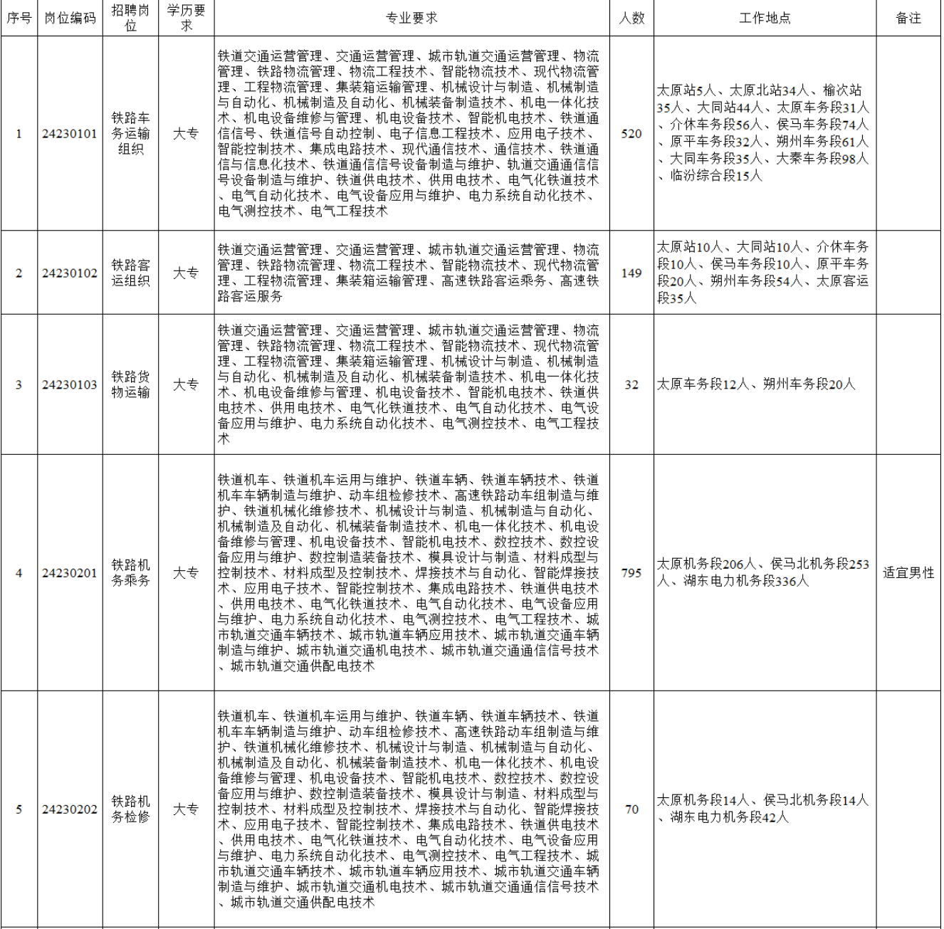 中國鐵路太原局集團(tuán)有限公司2024年招聘高校畢業(yè)生公告(二)