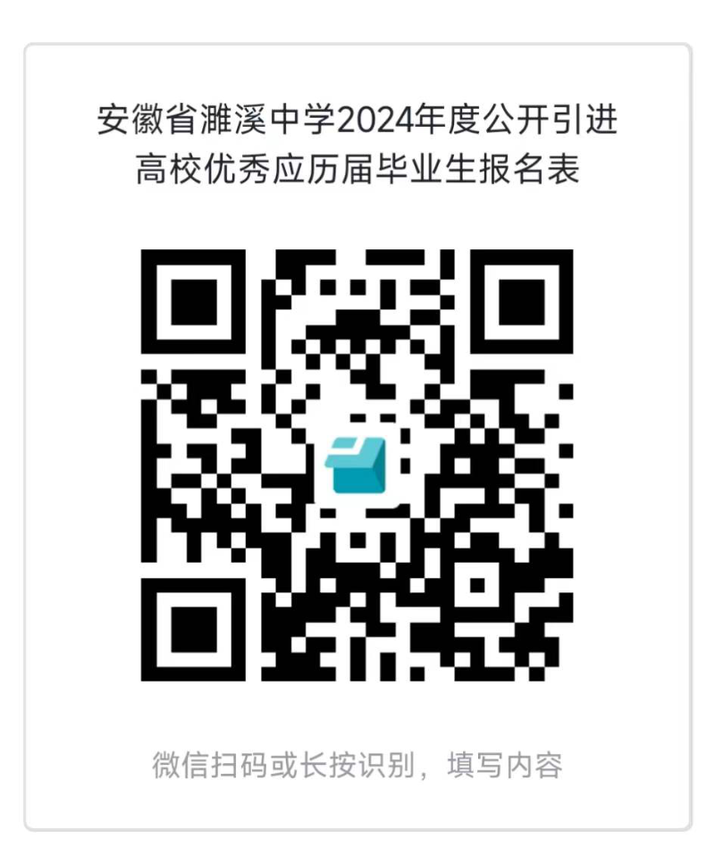 在本公告下方下載并填寫“安徽省濉溪中學(xué)2024年度公開引進(jìn)高校優(yōu)秀應(yīng)歷屆畢業(yè)生報(bào)名表”,掃描二維碼,上傳至“安徽省濉溪中學(xué)2024年度公開引進(jìn)高校優(yōu)秀應(yīng)歷屆畢業(yè)生報(bào)名表”表單: