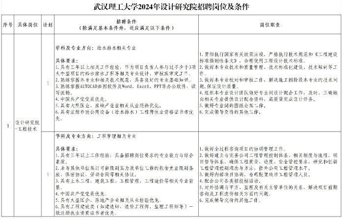 武漢理工大學(xué)2024年設(shè)計(jì)研究院招聘啟事