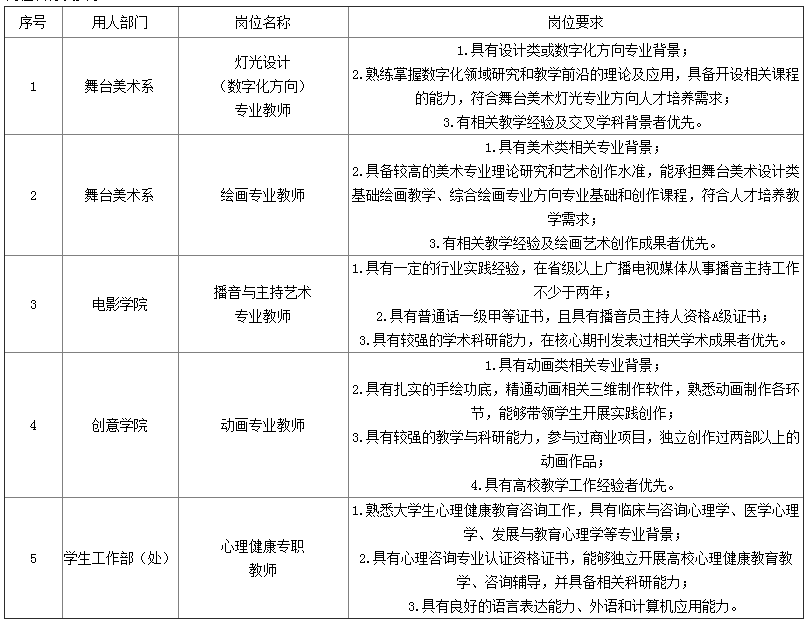 依照《上海市事業(yè)單位公開招聘人員辦法》(滬人社規(guī)〔2019〕15號(hào))及學(xué)校相關(guān)工作要求,上海戲劇學(xué)院現(xiàn)面向社會(huì)招聘專任教師4名、心理健康專職教師1名,具體情況如下: