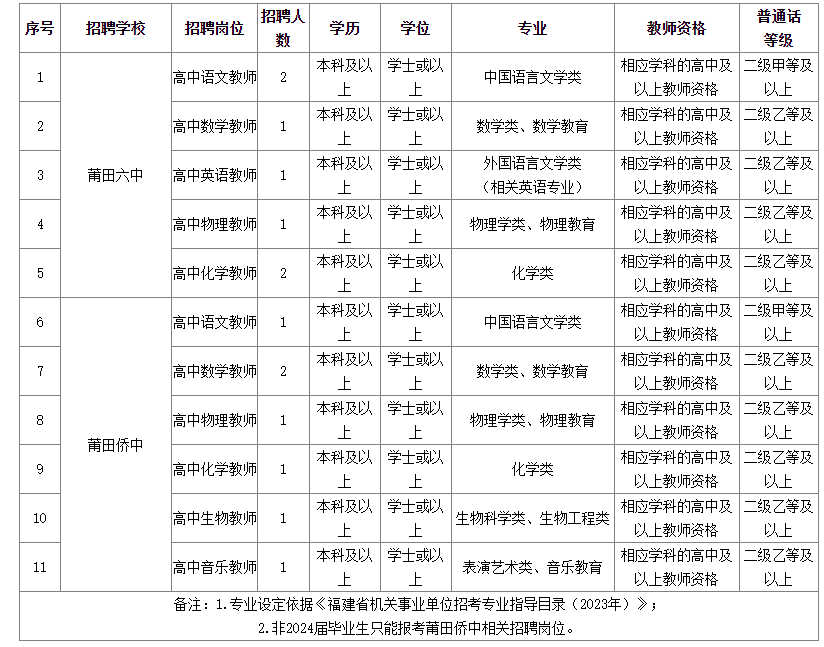 莆田市涵江區(qū)考核招聘2024年新任教師方案