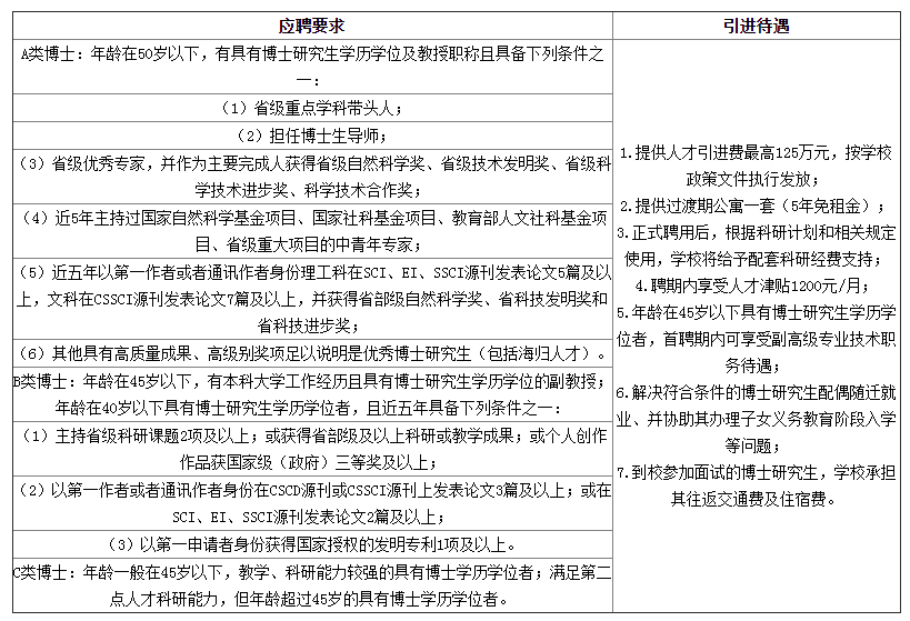 不具有博士研究生學歷學位,但為頂尖人才、領軍人才、拔尖人才;國家重點學科、國家基礎學科人才培養(yǎng)和科學研究基地的學科帶頭人;國家科學基金重大、重點項目負責人;以及其他經(jīng)學校組織相關專家評估認定的與此類人才相當?shù)膬?yōu)秀學者采用“一事一議”方式引進,并提供豐厚待遇及配套科研經(jīng)費,人才引進費上限800萬元,科研啟動經(jīng)費上限500萬元。