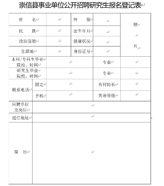 附件:崇信縣事業(yè)單位公開招聘研究生報(bào)名登記表