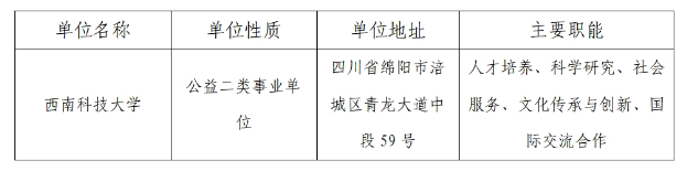 3.面試資格審查手續(xù)的辦理。面試資格審查由西南科技大學負責進行,具體時間、地點及人員名單于2024年3月11日前在西南科技大學公招網站公布(暫定于3月12日上午10:00-12:00進行面試資格審查,以正式通知為準,考生提前準備好相關材料),不再另行通知,請報考者注意查閱。