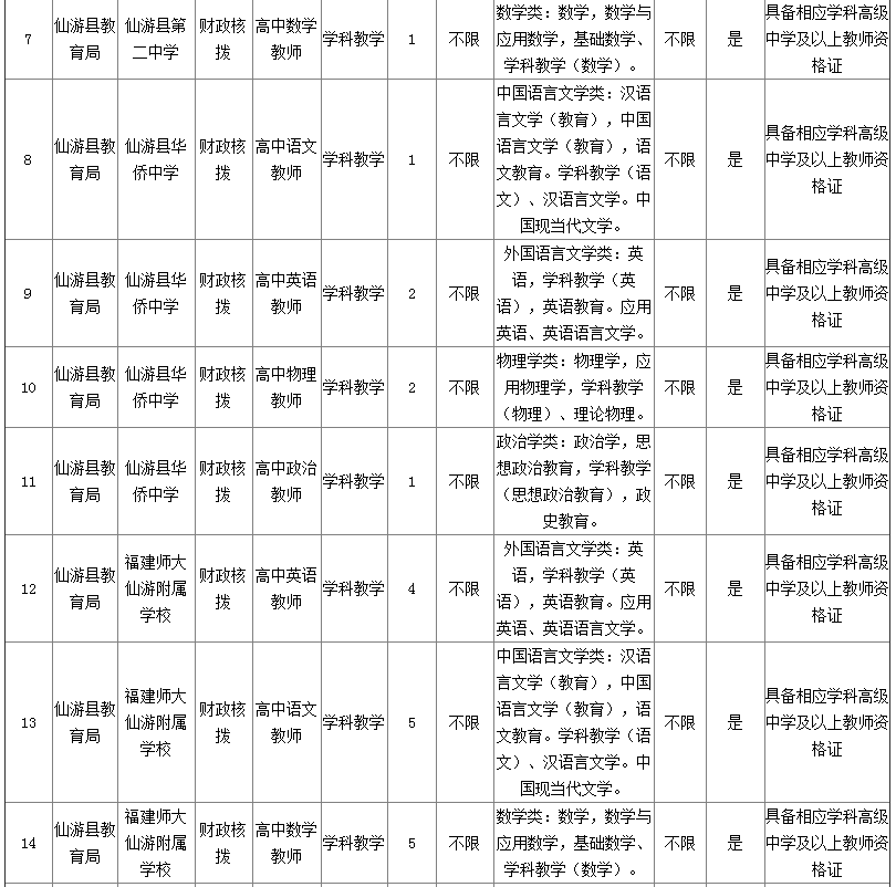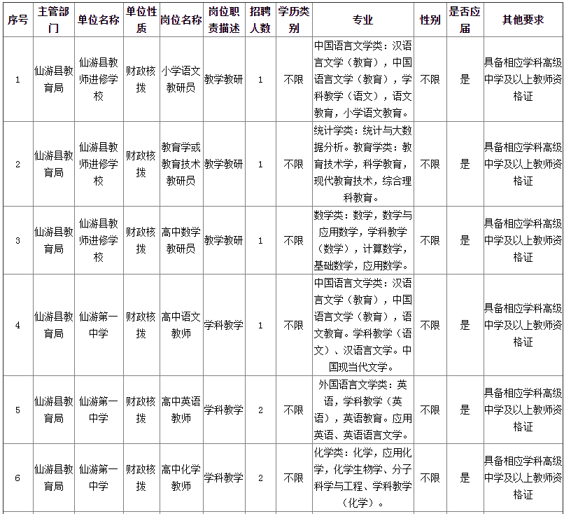 資格初審、復(fù)核、面試、考核、體檢、考察等由仙游縣教育局負責(zé)組織實施招聘工作。
