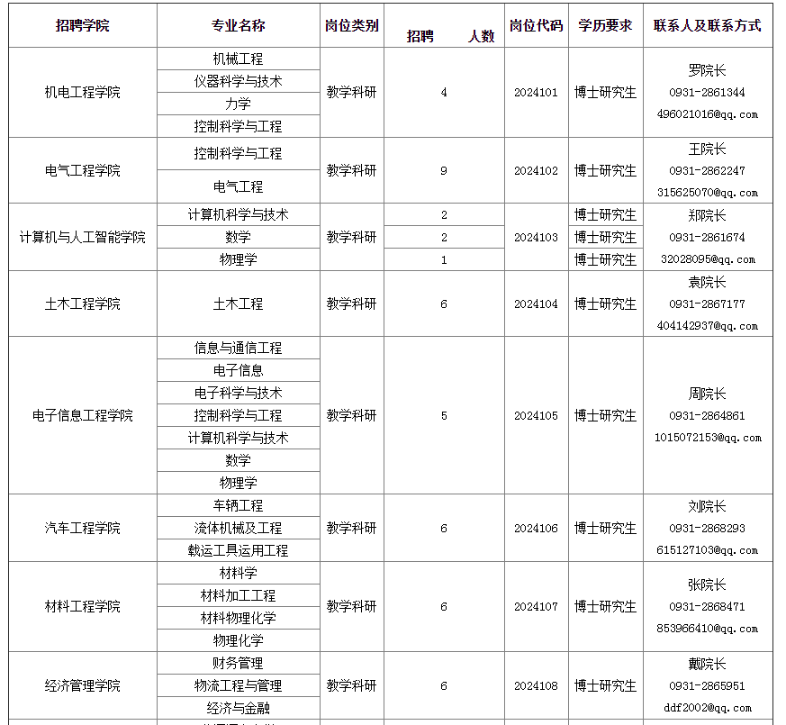 報(bào)名從本公告發(fā)布之日起至2024年12月10日截止。報(bào)名采取郵件報(bào)名的方式,填寫報(bào)名登記表(見附件),連同個(gè)人身份證、畢業(yè)證、學(xué)位證及科研成果等掃描件,投遞至招聘學(xué)院聯(lián)系人郵箱,報(bào)名郵件請同時(shí)抄送人事處郵箱jsgzb@lzit.edu.cn。郵件主題請以“應(yīng)聘某某學(xué)院+本人姓名+學(xué)位+畢業(yè)學(xué)校+所學(xué)專業(yè)”命名,如:應(yīng)聘機(jī)電工程學(xué)院+張三+博士+某某大學(xué)+機(jī)械工程。