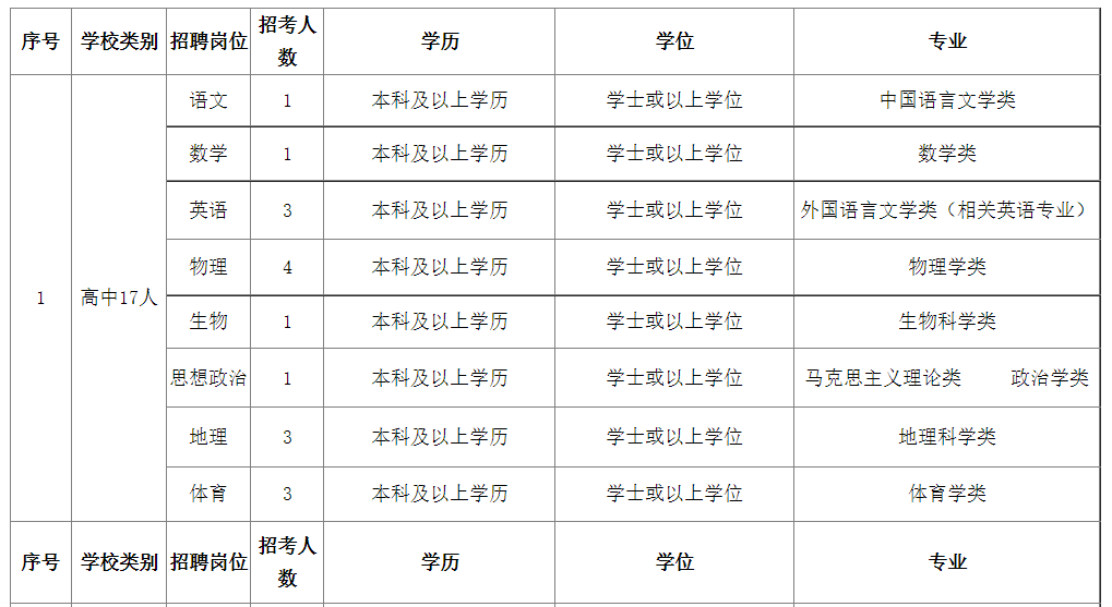 2.高中教師須取得相應(yīng)學(xué)科高級(jí)中學(xué)及以上教師資格,初中教師須取得相應(yīng)學(xué)科初級(jí)中學(xué)及以上教師資格,小學(xué)教師須取得相應(yīng)學(xué)科小學(xué)及以上教師資格。