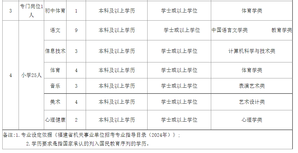 為進(jìn)一步優(yōu)化師資隊(duì)伍結(jié)構(gòu),滿足學(xué)校教學(xué)需要,促進(jìn)教育均衡發(fā)展, 根據(jù)《福建省教育廳 中共福建省委機(jī)構(gòu)編制委員會(huì)辦公室 福建省財(cái)政廳 福建省人力資源和社會(huì)保障廳印發(fā)<關(guān)于進(jìn)一步做好全省中小學(xué)幼兒園教師補(bǔ)充工作的若干措施>的通知》(閩教規(guī)[2022]3號(hào))及《福建省教育廳 福建省人力資源和社會(huì)保障廳關(guān)于2024年全省中小學(xué)幼兒園教師公開招聘筆試服務(wù)工作的通知》(閩教師〔2024〕2號(hào))等文件精神,結(jié)合我區(qū)實(shí)際,現(xiàn)就我區(qū)2024年公開招聘中小學(xué)新任教師方案公告如下: