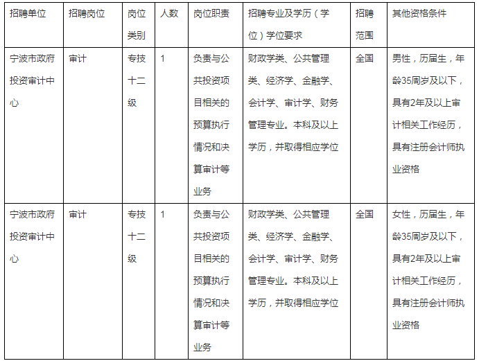 寧波市審計(jì)局下屬事業(yè)單位公開(kāi)招聘事業(yè)編制工作人員公告