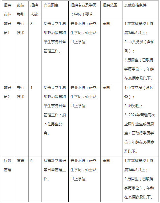 四、招聘單位、崗位、人數(shù)、專業(yè)、學(xué)歷和范圍及資格條件